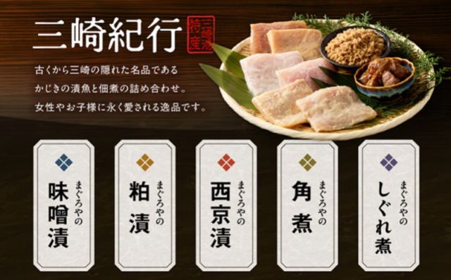 「三崎紀行」 鮪や自慢の 味噌漬、粕漬、西京漬、角煮、しぐれ煮を、セットにしました。 【セット内容】