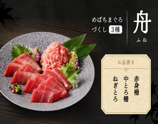 「めばち鮪づくし舟」 新鮮「天然めばちまぐろのサク」と、 「鮪(まぐろ)たたき)」を、セットにしました。 太平洋で捕獲し、船内で急速冷凍された新鮮なマグロ 三浦三崎港に水揚げされ、そのまま弊社工場で加工しました。 捕れたての鮪をご堪能下さい。 サクは、お刺身に、たたきは、ネギトロ丼や、軍艦巻がお勧めです。 【セット内容】