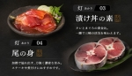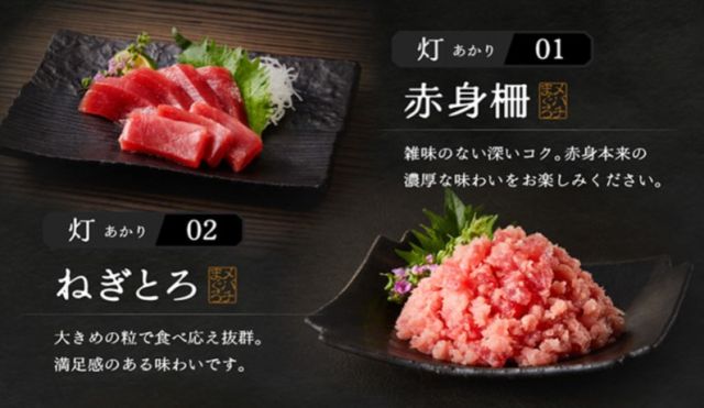 「めばち鮪づくし灯」 「まぐろの尾の身」と、「まぐろの赤身サク」、「ねぎとろ」 さらに「まぐろ漬け丼の素」を、セットにしました。 太平洋で捕獲し、船内で急速冷凍された新鮮なマグロ 三浦三崎港に水揚げされ、そのまま弊社工場で加工しました。 捕れたての鮪をご堪能下さい。